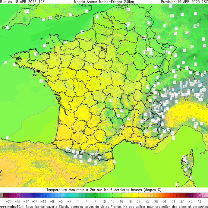 Les cartes sont actualisées toutes les 15 minutes 24h/24.